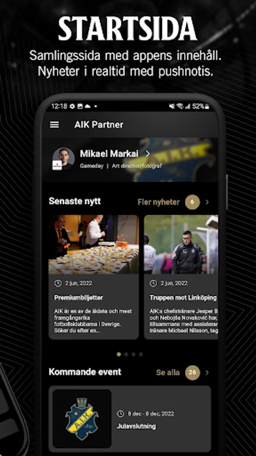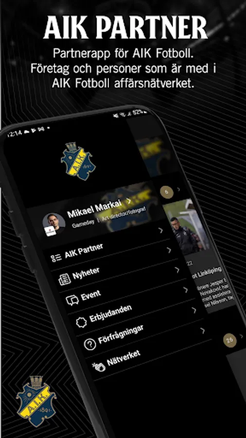 AIK Partner + for you who are a partner of AIK Football. Here you get information about activities, events, offers and advance information. As well as access to companies and people who are members of AIK Football's Business Network.