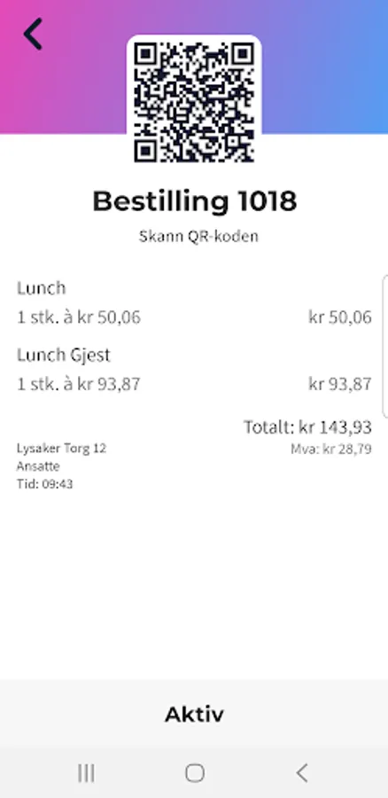 After a successful payment, you will get a QR code in the app. Scan the QR code you receive in the app at the receipt printer. Take the receipt with you and place it visibly next to the plate during the meal for inspection!