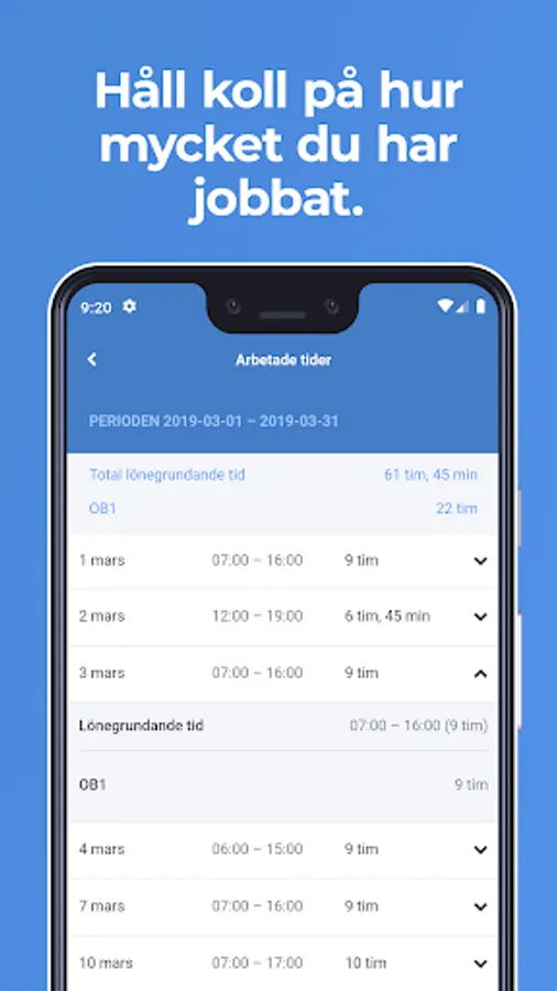 Personalkollen as mobile app makes it easy for you as an employee to keep track of your work.