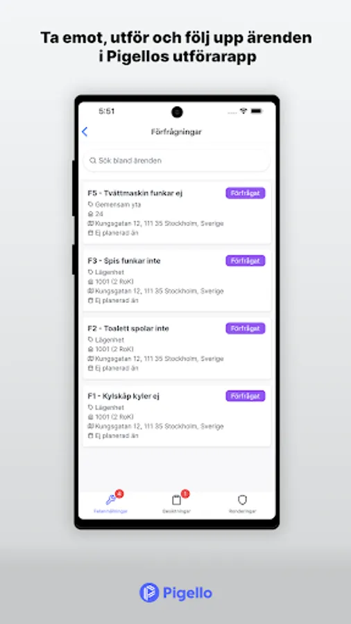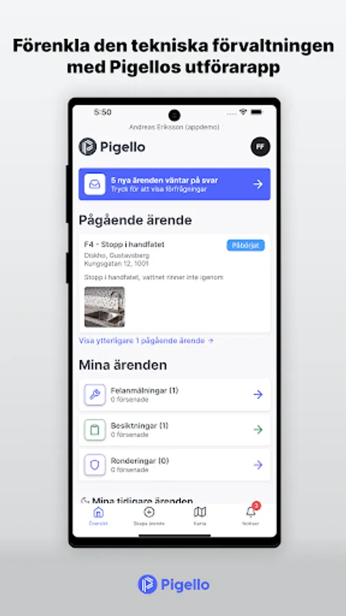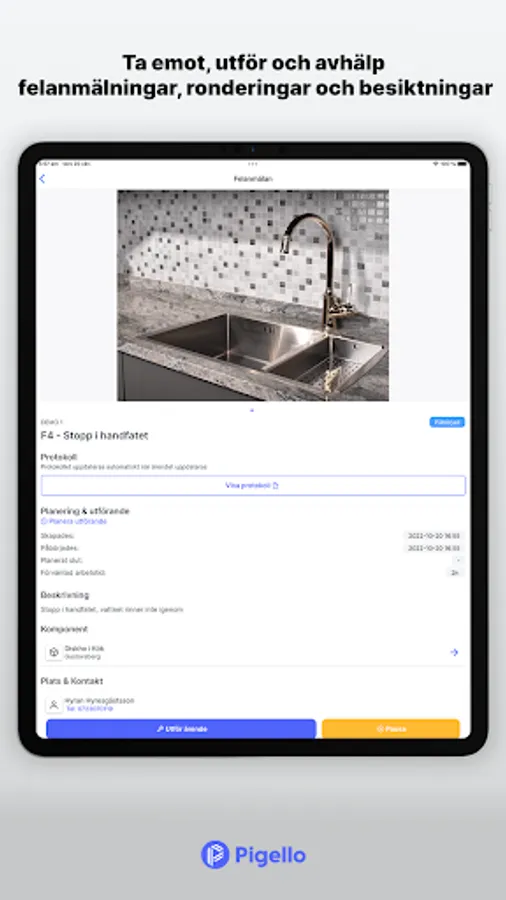 With Pigello's app for technical management in the field, it is easier than ever to keep track of and carry out fault reports, inspections and rounds.