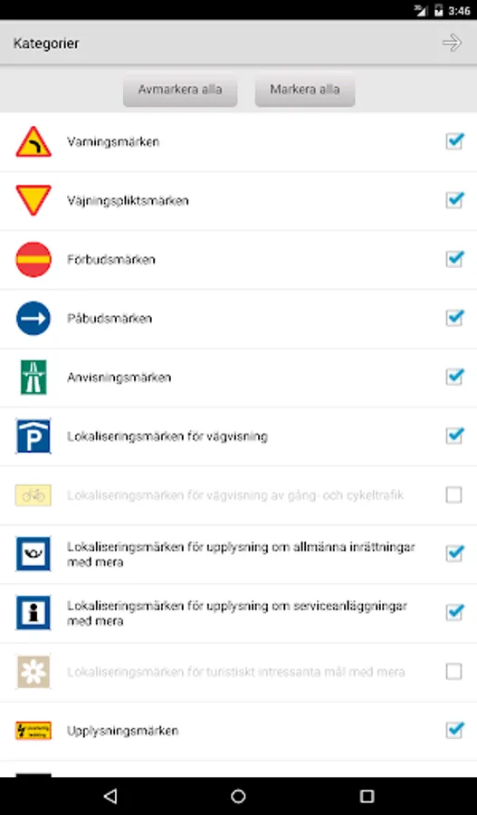• Contains all Swedish road signs and road markings