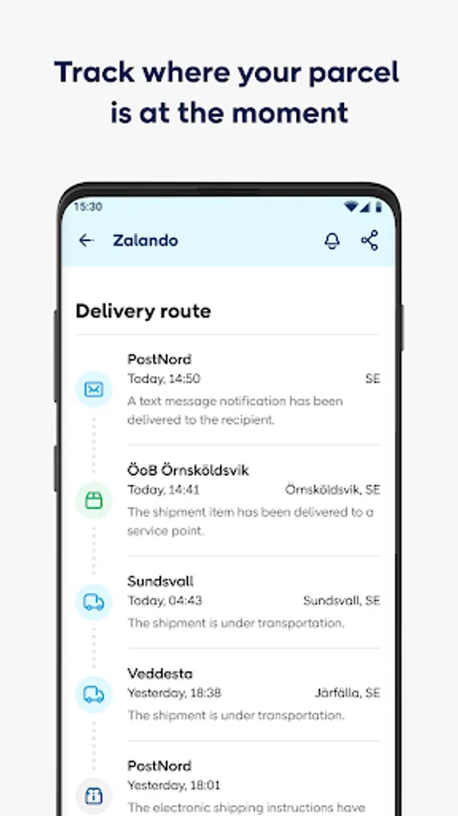 Keeping track of parcels with PostNord’s app is simple. Create an account in the app and have your parcels added automatically, and much more: