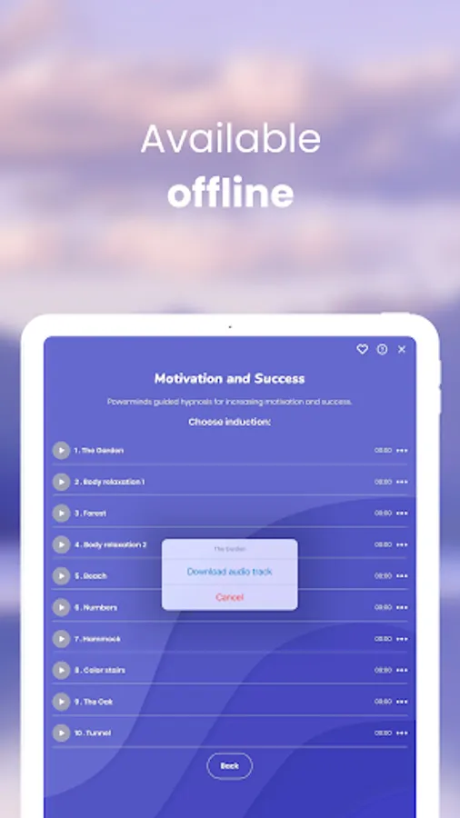 Powermind offers an effective solution: relaxing meditation and pre-recorded soundtracks for increasing levels of productivity and mindfulness, background music for relaxing meditation, focus and calming down before sleep, guided hypnosis for mental health and focus stimulation.