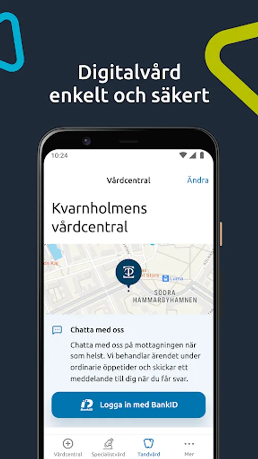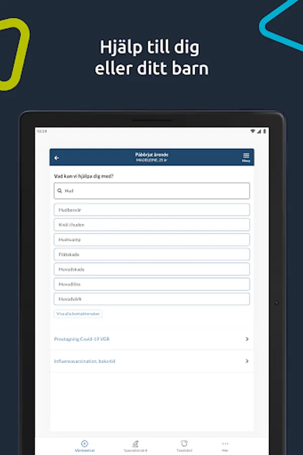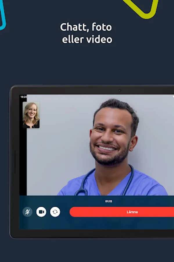 You can chat, send photos and participate in video calls with your health center, specialist care or rehab clinic. Submit your case at any time, around the clock, any day of the year. Nurses, doctors and psychologists are then available during our regular opening hours.