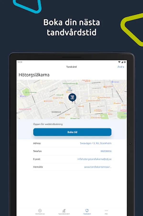 In Stockholm, there is Runby care center, Kvarnholmen care center, Vasastans care center, Edsbergs care center, Västervården's GP clinic, Ekerö care center, Värmdö care center, 5 GPs, Hammarby Sjöstads Husläkare, Östra care center, Familjeläkargruppen Vödplanna, Huskenralen, the family doctors in Österåker.