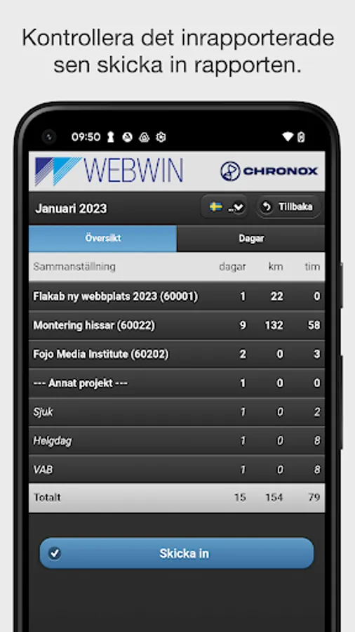 Chronox Time Reporting is a simple and modern time reporting system for small and medium-sized companies. It is designed to make the working day more efficient for the user and to easily keep track of times, staff and working hours.