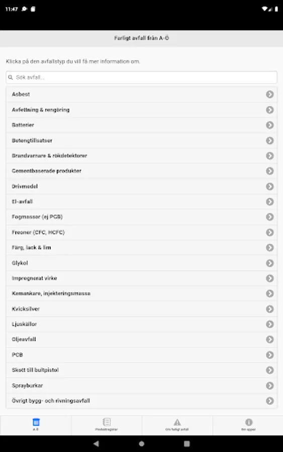 Hazardous waste contains substances that are in some way harmful to health and the environment. If such toxic substances into the environment, they will remain and could affect the environment negatively for a long time. Therefore, all hazardous waste, even small quantities, collected and disposed of properly. Using the app Hazardous waste can quickly and easily find out how different types of waste to be managed.