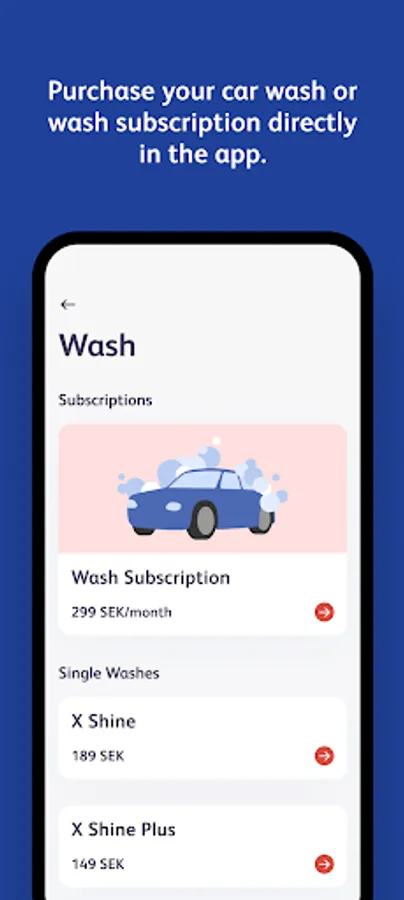 • Buy a car wash subscription or single wash in the app, and wash without leaving your car