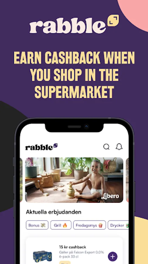 The Rabble Cashback app gives you access to deals in your grocery store. You get cash back on all your qualified purchases you make in the grocery store. Just select the offers you want to claim and scan your receipt to get cash back on your purchase.