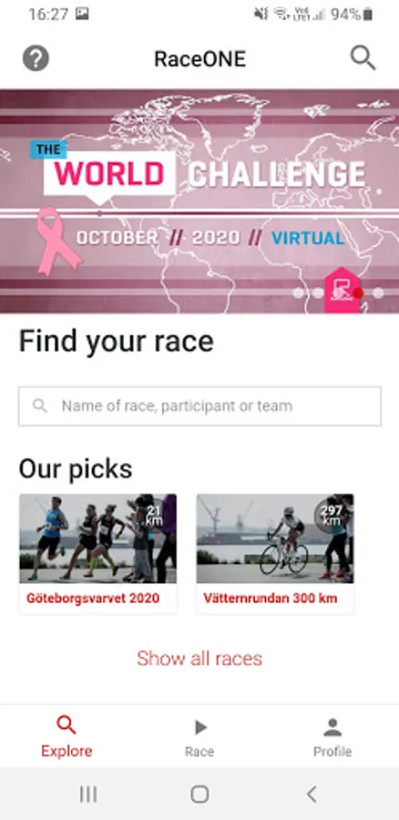 RaceONE is the app that connects participants with family and friends. Using GPS-tracking participants can be followed live during an entire race.