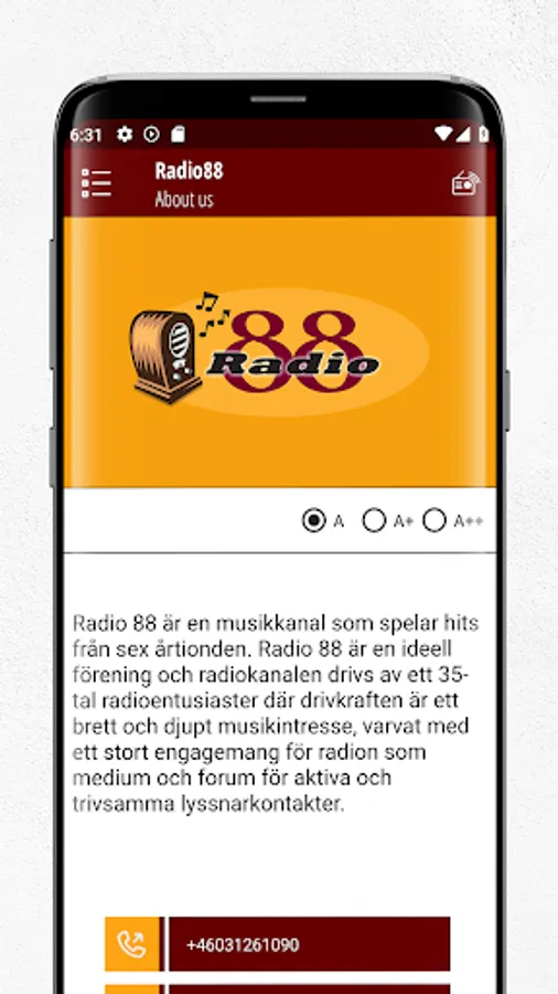 Radio 88 is a music channel that plays hits from six decades. Radio 88 is a non-profit organization and radio station operated by some 35 radio enthusiasts where the driving force is a wide and deep interest in music, interspersed with a great commitment to the radio as a medium and a forum for active and pleasant listening contacts.