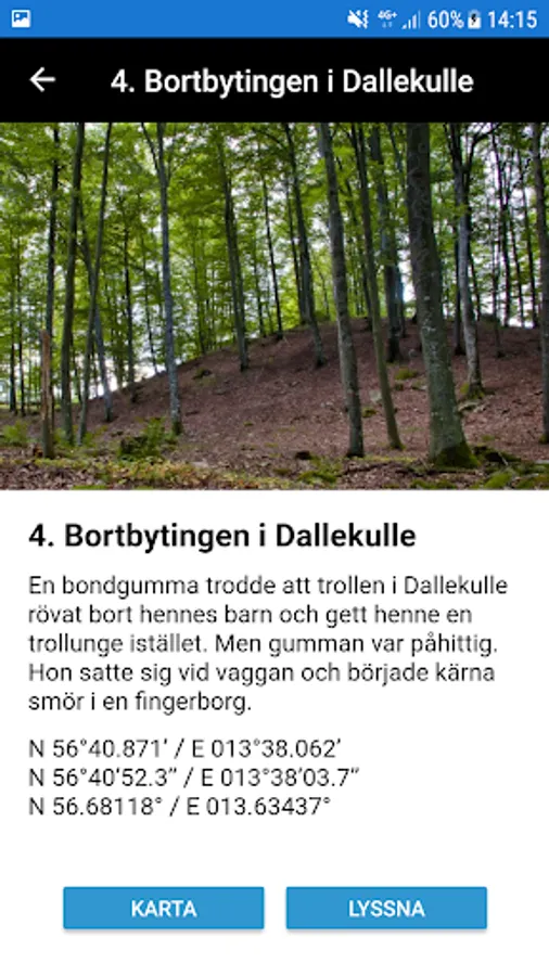 With the help the app you can also go treasure-hunting in th Land of Legends. The treasure you will find is of course an exciting story. Call up a telephone number and listen. Also here you have the choice of language: Swedish, English, or German.