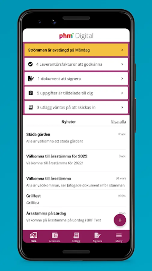 Via the app My accommodation, you can take part in news and receive information about maintenance work from your tenant-owner association or landlord.