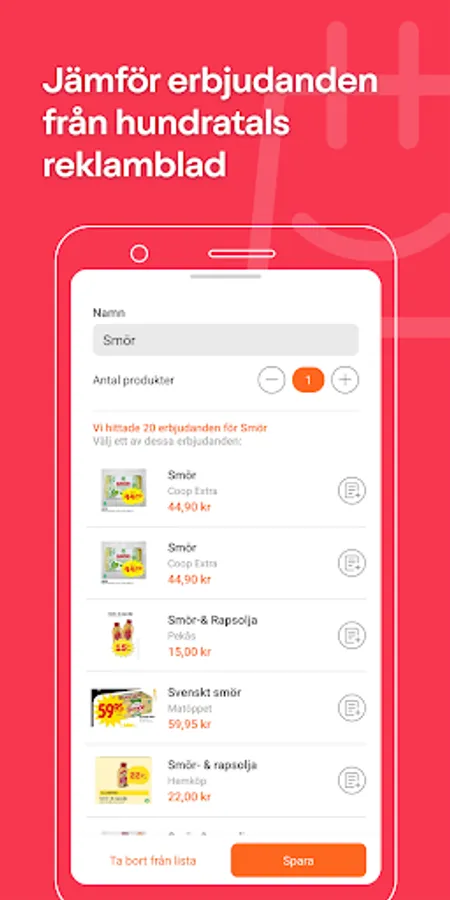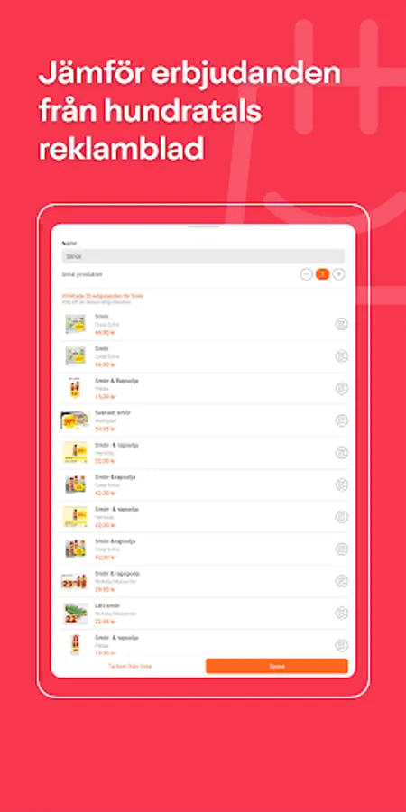 Are you looking for a specific product? You can find these by selecting this in the menu in our app. In this way, you can get a smooth overview of where the product can be found, at what price and for how long offers are relevant. You can usually select the product from the flyer by clicking on it, then you can easily order the product directly from the web shop. You can of course also save the offer through our save function which you will find at the bottom. You can thus easily find the offer later and compare with other offers.