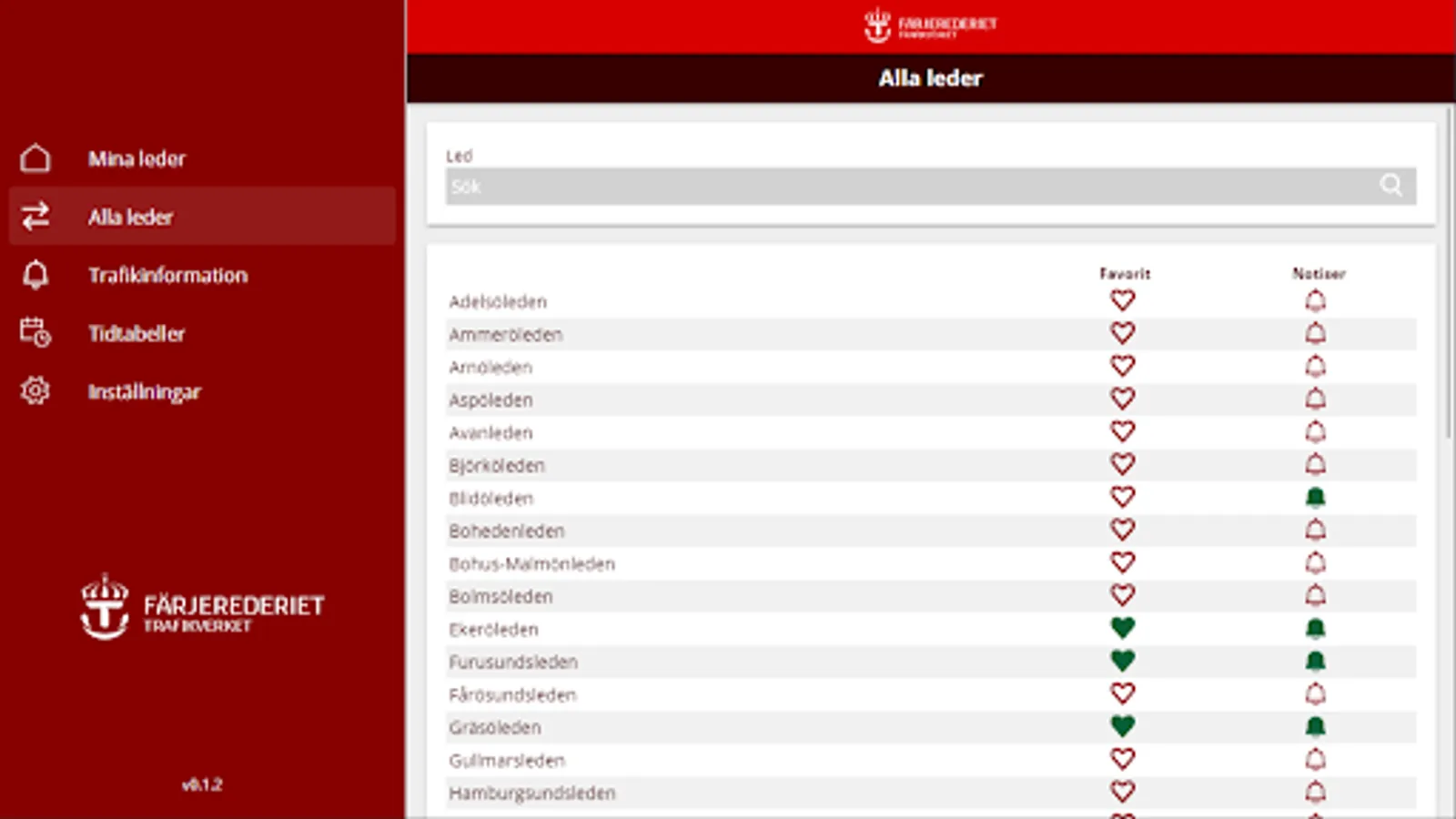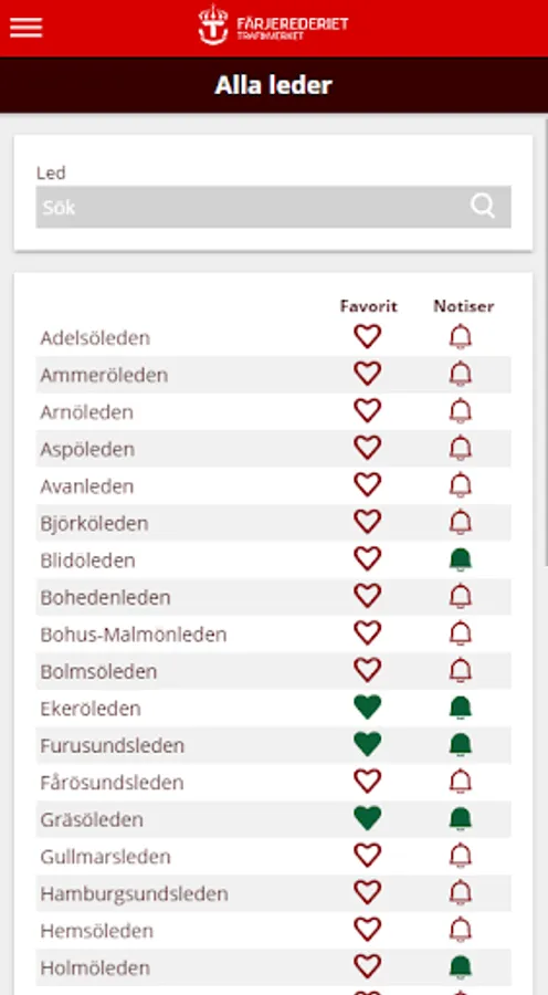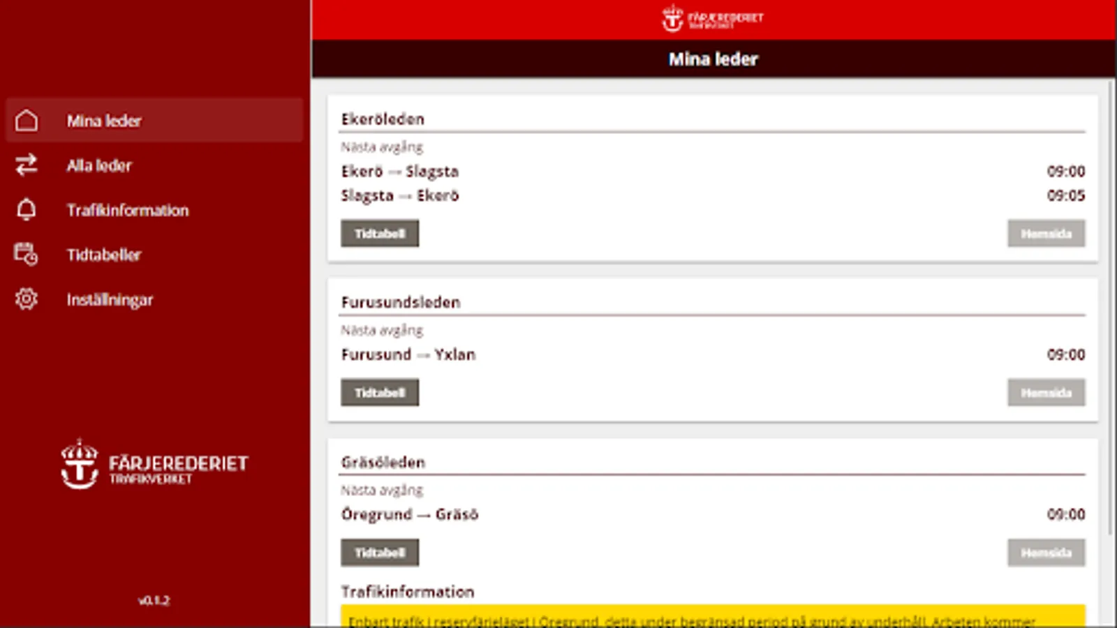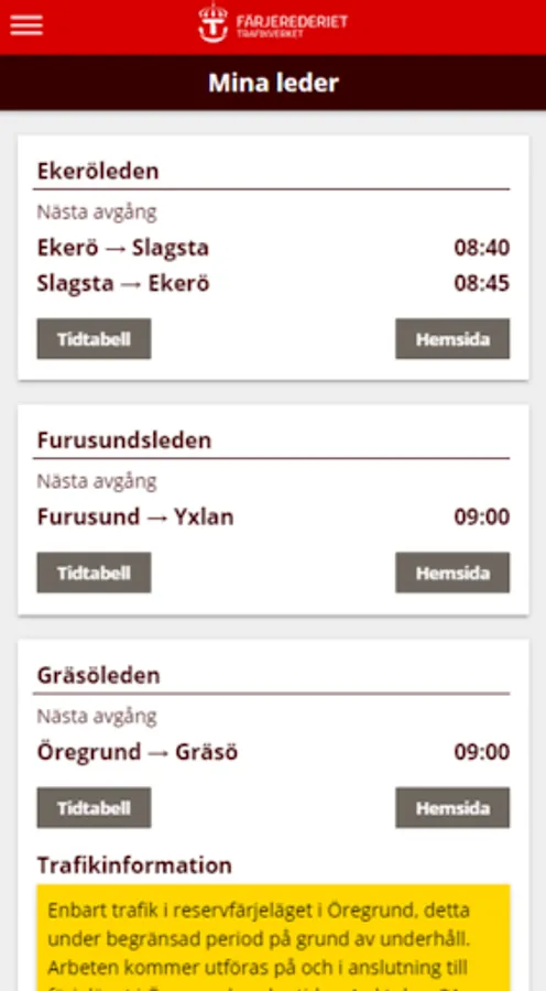 Trafikinfo Färjerederiet Screenshots