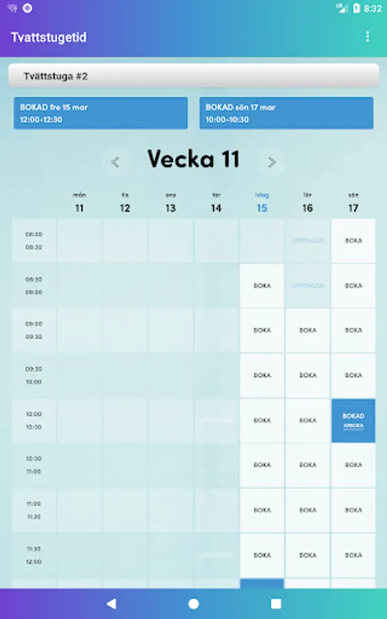 Laundry Room is an app for those who use Tvättstugetid.se to book washing time. If you already have an account and use the service today, you can log in with the same information in the app to gain access to reminders and push notifications.
