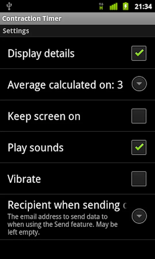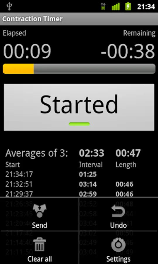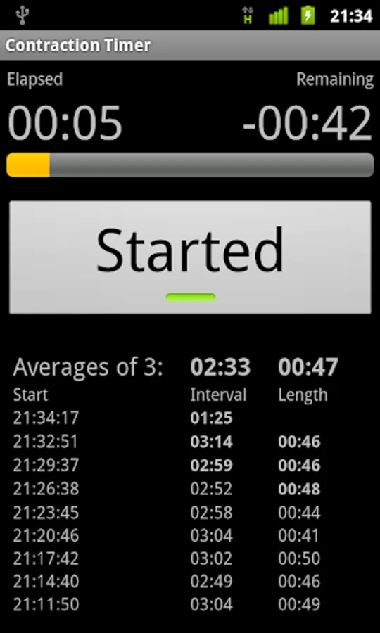 Keep track of contractions when giving birth. Lists start time, duration of contracions as well as the interval between contractions. You can easily predict when the next contraction starts and for how long it will last, as well as predict when the current rest is about to end.