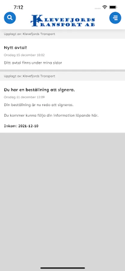 This is the Klevefjords Transport APP, your faithful companion that keeps you updated and simplifies communication for customers and employees at Klevefjords Transport