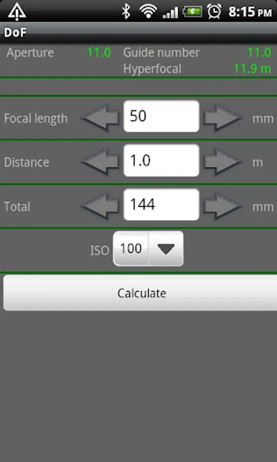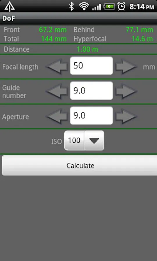DoF will also calculate the hyperfocal distance, this is the distance you should set your camera to, to get everything to infinity look sharp. If you like, DoF can calculate what guide number your flash needs to have, or how far it will reach.