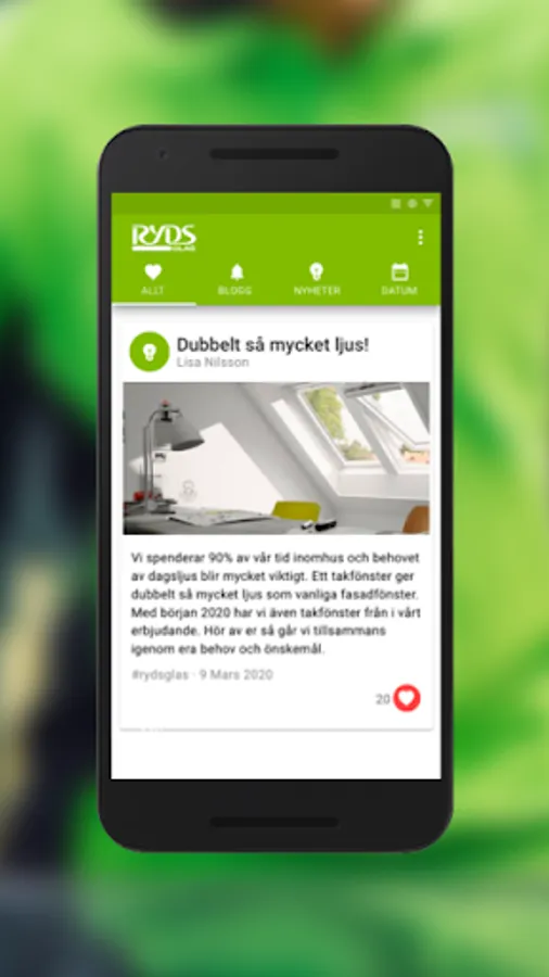 The app appeals to you who are curious about Ryds Glas and what we can offer in the form of products and services. The app also has a "on call" button so you can quickly get in touch with Ryds Glas if the accident has occurred. In addition, the app creates a community, affiliation and inspiration for you who are employed by Ryds Glas.