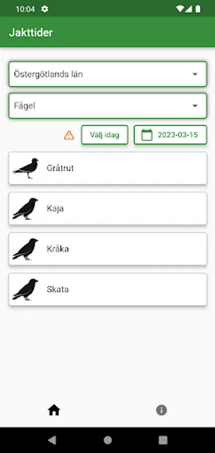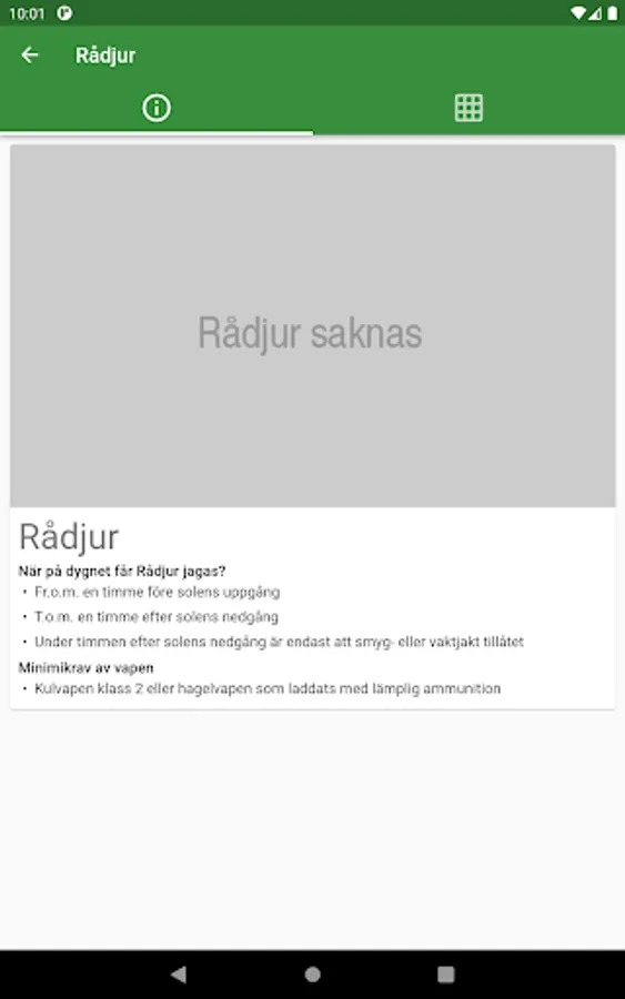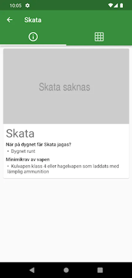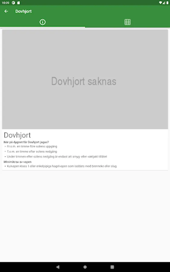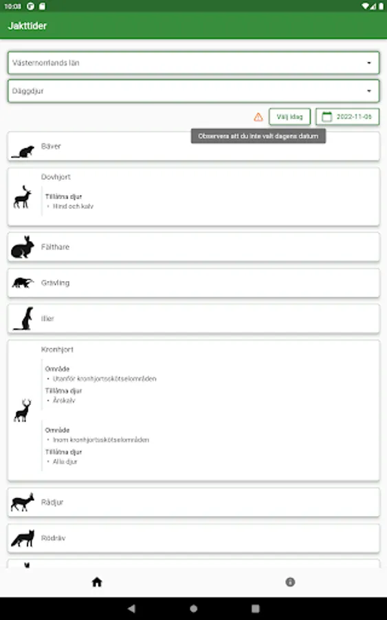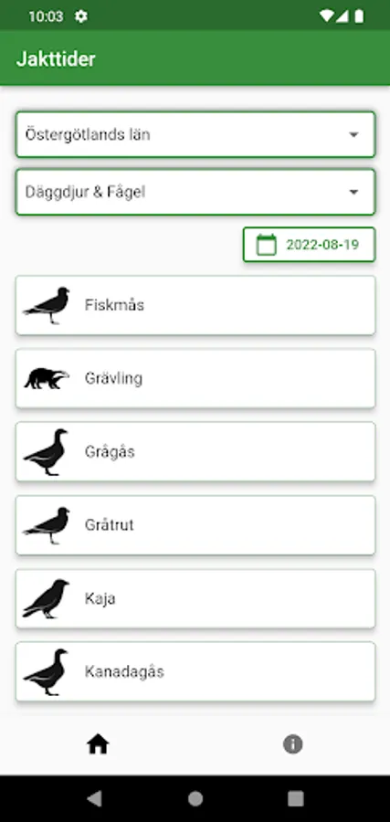 The only free service that simply and clearly shows which game in Sweden is allowed to be hunted, given a county and a date. A listing of hunting times, but simple!