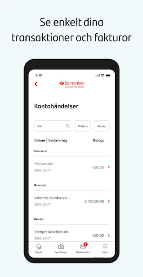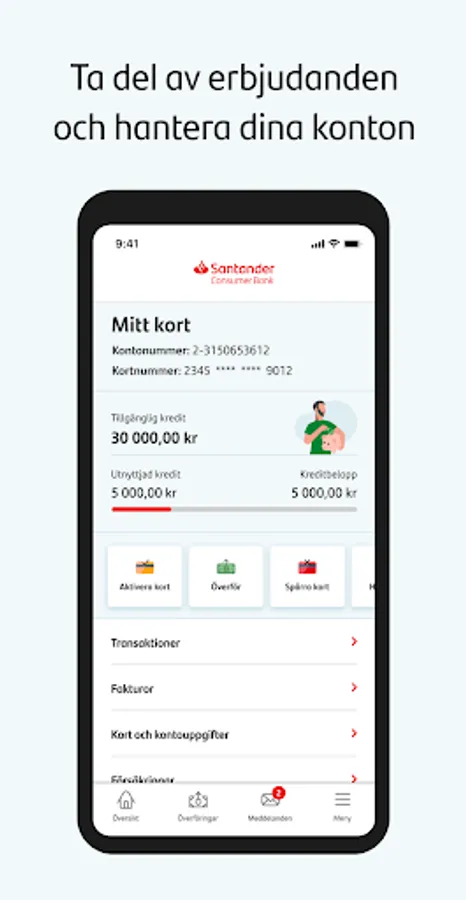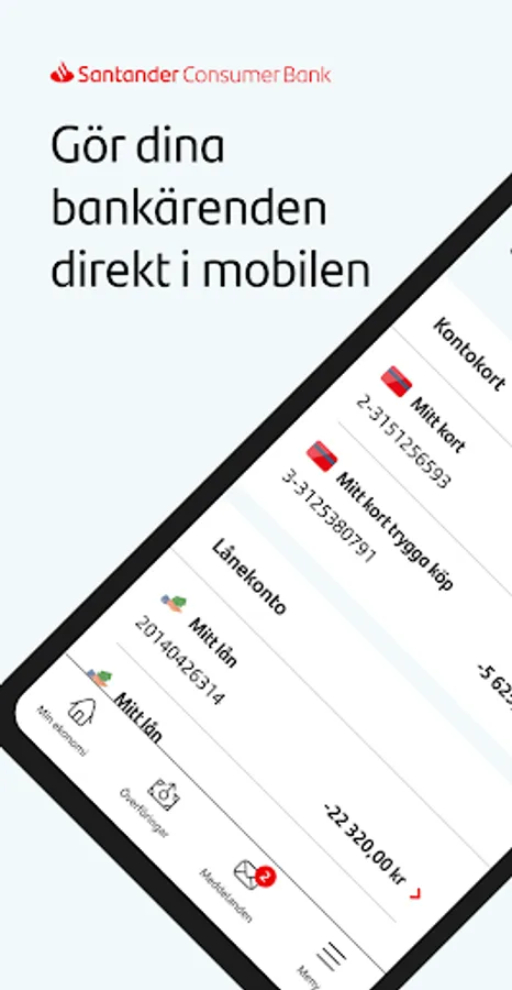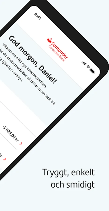 So glad you found our app! Here, as a customer with us at Santander Consumer Bank, you can make your banking transactions even smoother. In the app, you can follow what's happening on your account, see your balance and much more. Getting started is easy.
