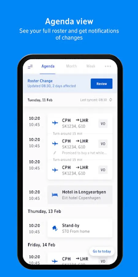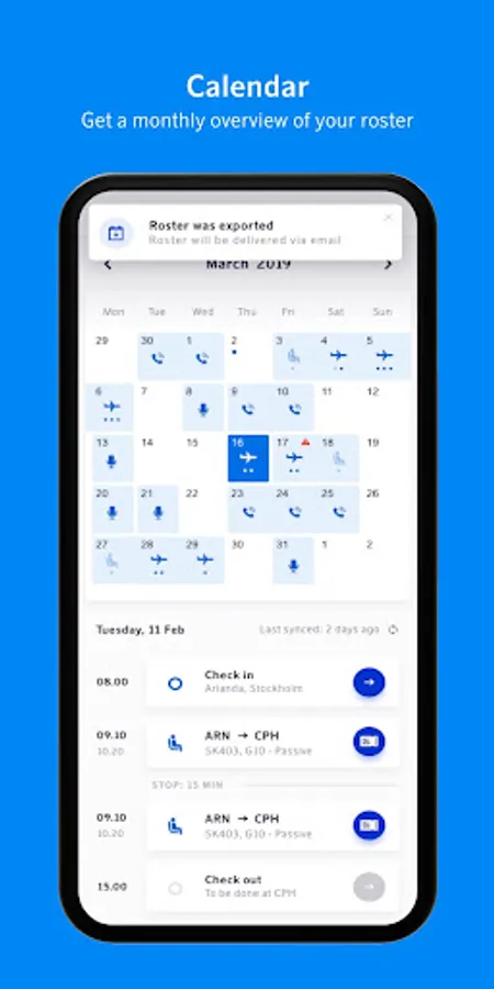 Get notifications of roster changes, check-in/checkout reminders and information about flight or aircraft changes and boarding. Sync your roster seamlessly with your calendar, access MEL and flight or crew information, check stats and keep an eye on the weather. And stay connected with fellow crew members anytime, anywhere – even when you’re offline.