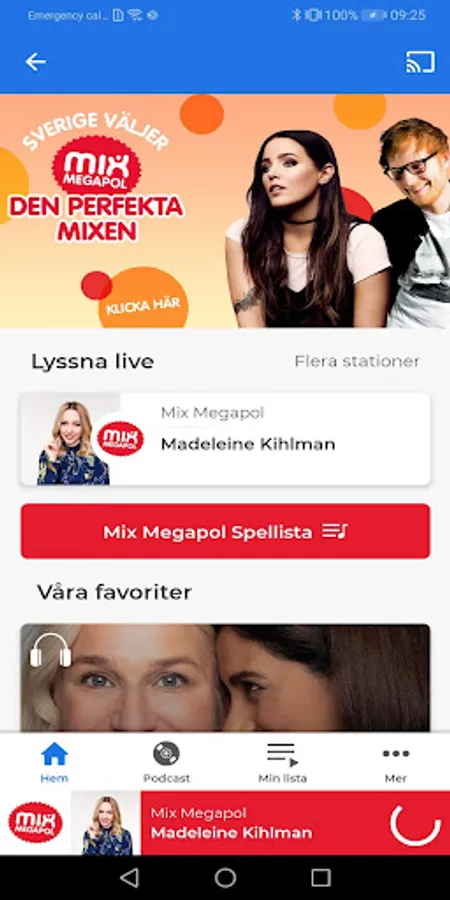 Listen to your favorite station when you are on the go. Live and on demand. Here you will find the Mix Megapol, NRJ Sweden, Rock Classics, Swedish Pop, Vinyl 107 and a whole bunch of other stations. Browse among the popular radio show, interviews, podcasts, and more.