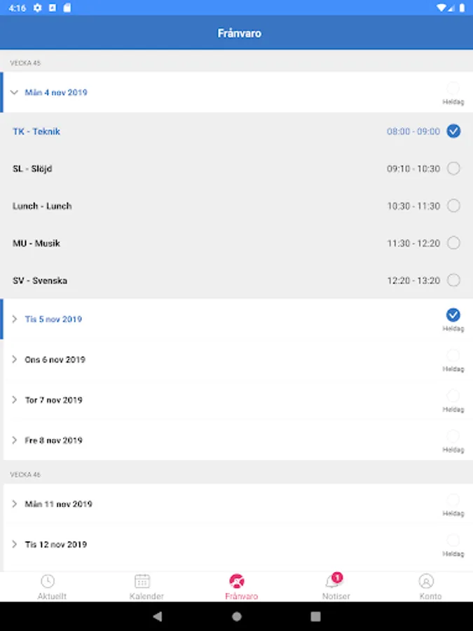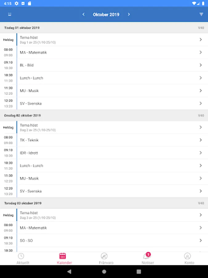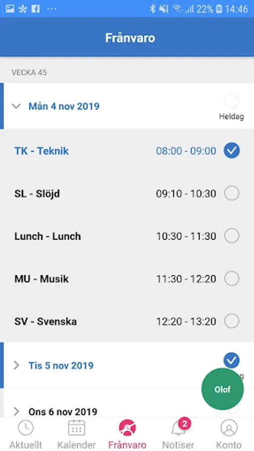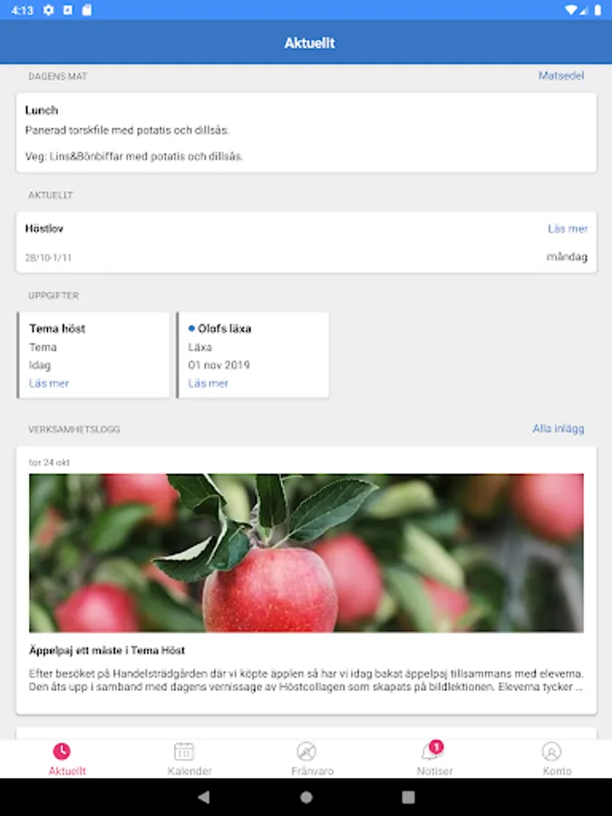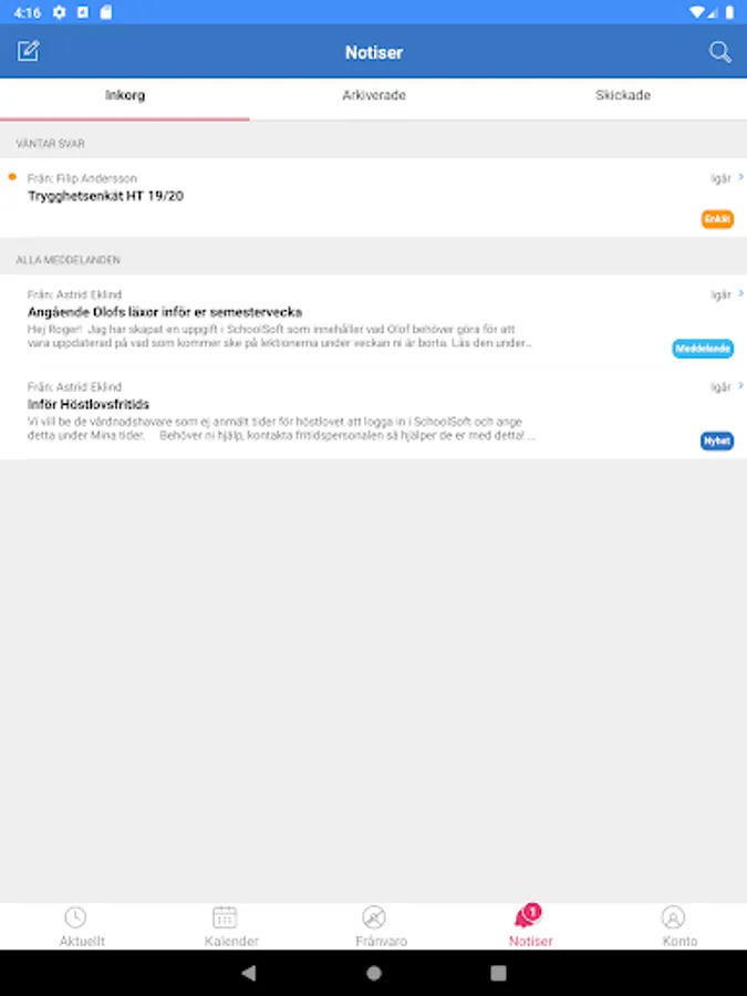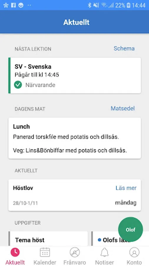 You get quick access to everything that is new in SchoolSoft and clearly see what is read or not. You can easily navigate to your schedule, attendance, calendar or the mobile version of SchoolSoft.