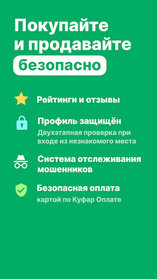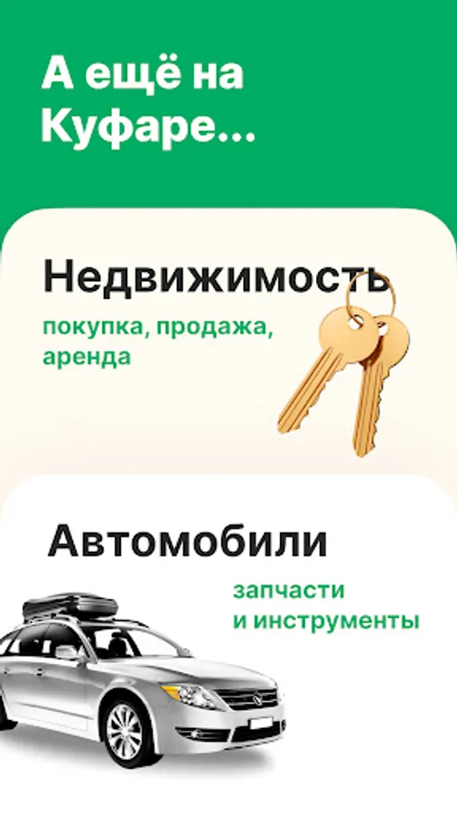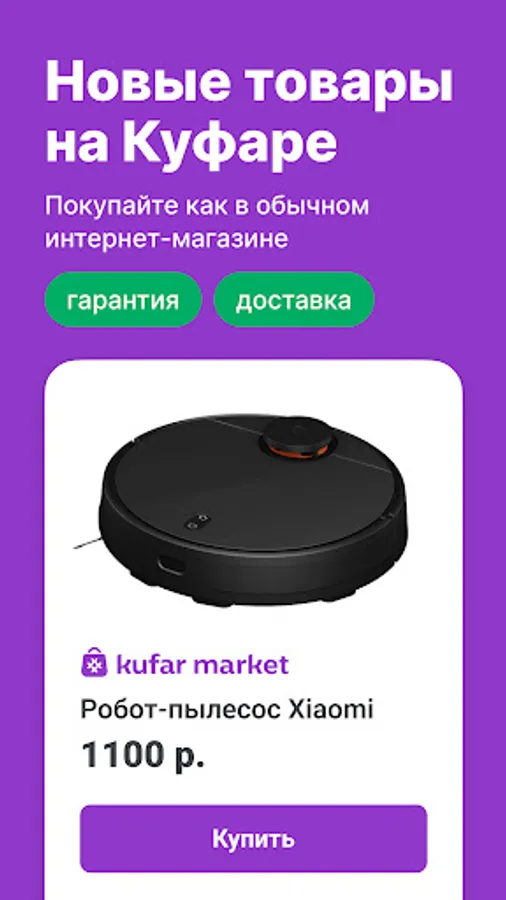 More than 1,600,000 users of Kufar publish about 60,000 ads per day . Just install the Kufar app and start your shopping. Convenient search allows you to quickly navigate the product catalog and buy exactly what you have been looking for. After all, Koufar is not just a flea market and not a bulletin board, but a full-fledged marketplace where you can find great promotions and discounts, buy goods with delivery or by installment using the Halva card.