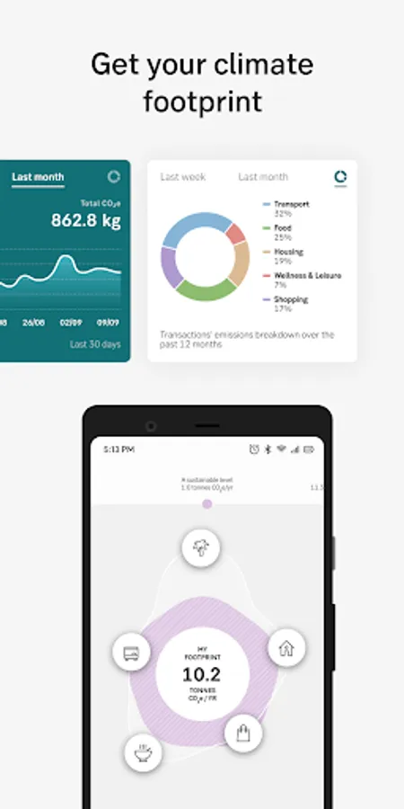 Enable the shift towards sustainable lifestyle through climate challenges, guided tips on CO2 footprint reduction and competition with others.