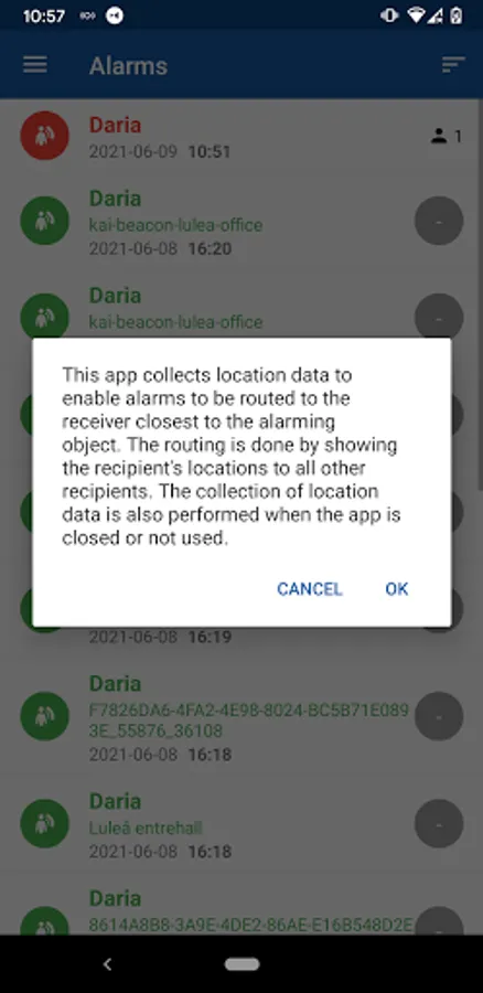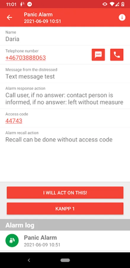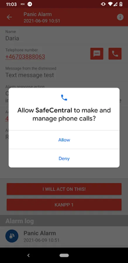 With the AddSecure SafeCentral application, you create fast and efficient alarm management for alarms that are activated from AddSecure SafeAlarm or from personal alarms (e.g. SRT). Alarms are sent directly to the people or groups who will handle the alarms. The alarm receivers see all incoming alarms on their mobile phones in the form of an alarm list with all detailed information including position on the map. SafeCentral is a safe, simple and cost-effective solution, for example when it is natural for colleagues to intervene and take the first action. Can also be combined with an external alarm Center.