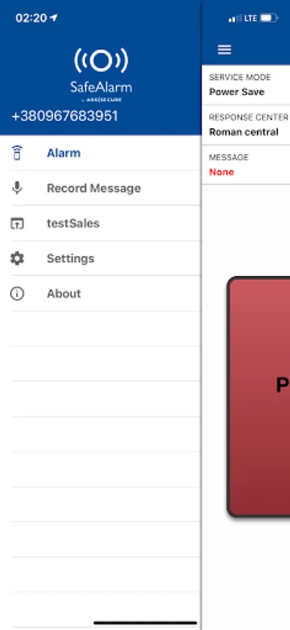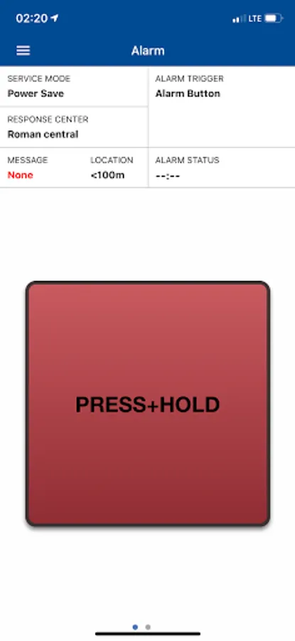 Alarms can be activated either by using the external wireless alarm button or directly from the screen in the app. The wireless alarm button is purchased separately and makes it possible to activate the alarm as long as the phone is in the same room. Activate the alarm from the screen either by holding down the alarm button for two seconds or by using the "dead-man grip" button.