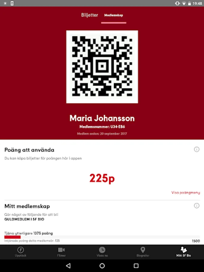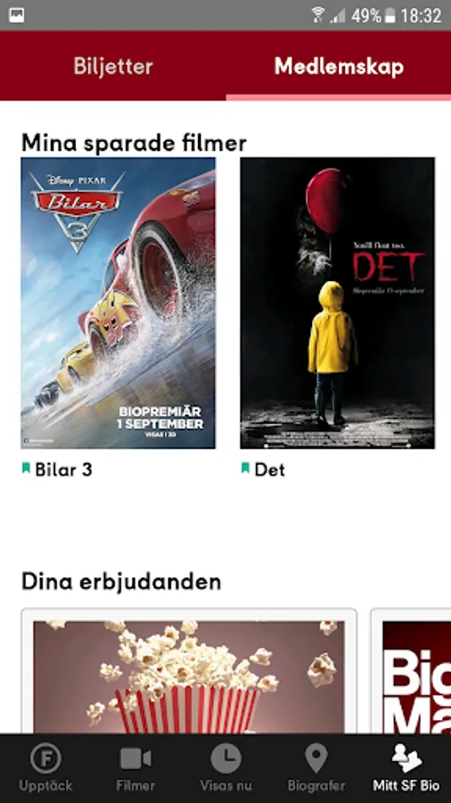 The app not only offers the fastest way to buy movie tickets, but as a member of the Film City, you also get your entire membership right on the phone - complete with all the awesome member features. By signing in as a member, you automatically earn credits when you buy your movie ticket and you have the opportunity to interest your favorite movies, favorite your nearest movie theater, and distribute points to friends, as well as enjoy amazing member offers. Your ticket is also saved directly in the app. Good, is not it?