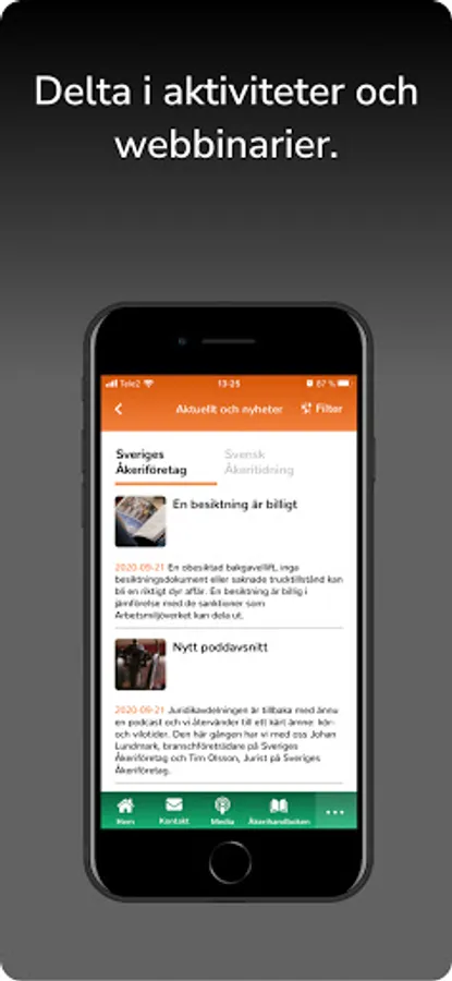 Sveriges Åkeriföretag wants to be close to our member companies and through this APP we make it quick and easy for you to take part in our range of information, facts, news, indexes, tools, training and events. The APP is an easy way to actively use the membership and communicate with us.
