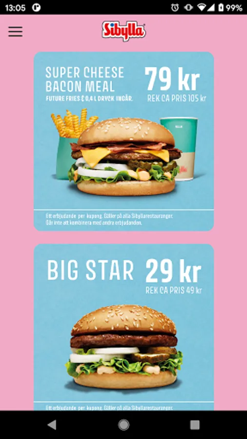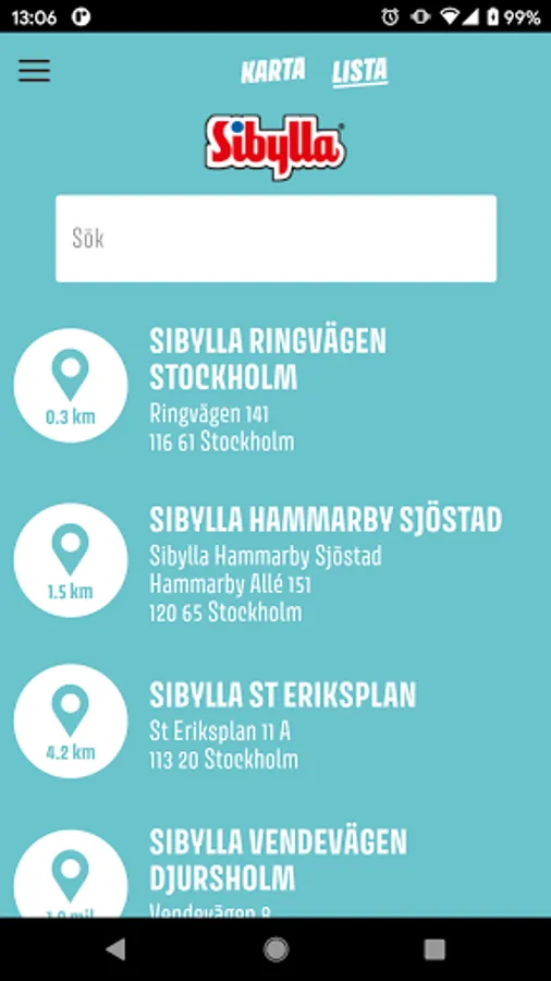 By Sibylla app you will find all the Sibyl Restaurants from Ystad in the south to Kiruna in the north. For every restaurant you get a route description and information about opening hours, phone number, etc. Also presented Sibylla nationwide menu that includes a lovely choice with both burgers, sausages, meatballs and kebabs. In the app you can also find information about current promotions and a lot out fine great deals. Welcome to Sibylla, take care!