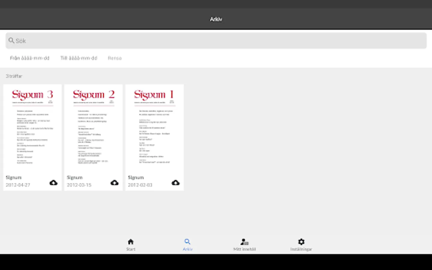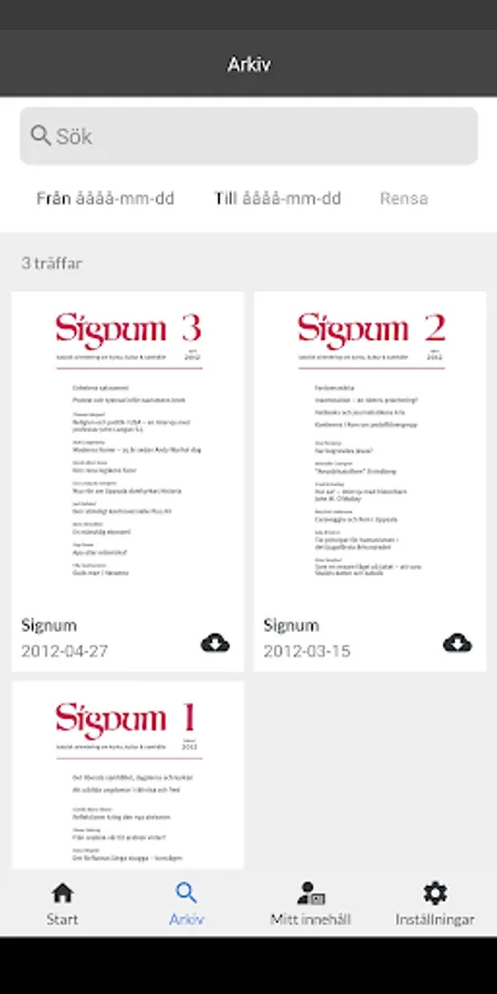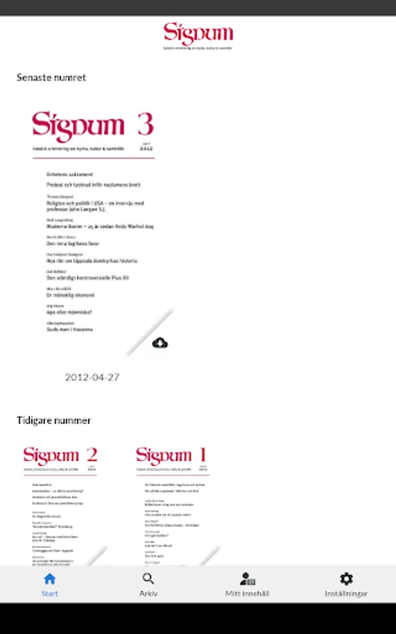 The paper edition of Signum is published in 8 issues per year. Here on our website is the continuous, up-to-date update of Signum's production. Here is also the archive with almost all material published in Signum since the start in 1975 and a digital pdf archive from and 2012.