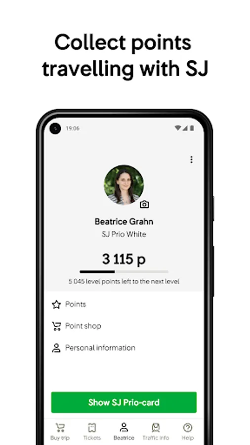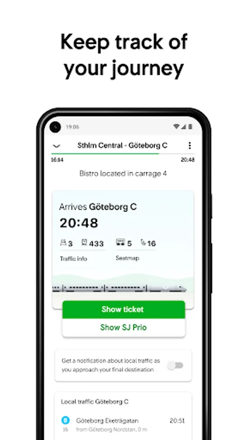 Buy train tickets, keep track of your journey and collect points when travelling with SJ.