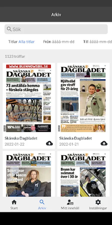 You get the whole magazine with its two parts. You can browse, zoom and search the magazine. Your purchased magazines are saved in a library in the app. Today's newspaper can be downloaded from 00.00 Swedish time.
