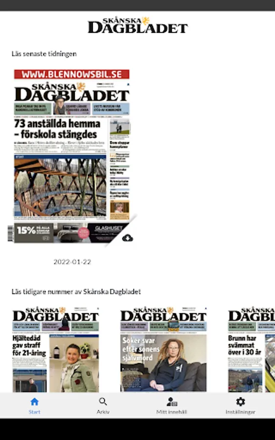 Skånska Dagbladet is your local morning newspaper with news from all over Skåne in one and the same edition. Take the opportunity to read it in the reading tablet in an extra readable form.
