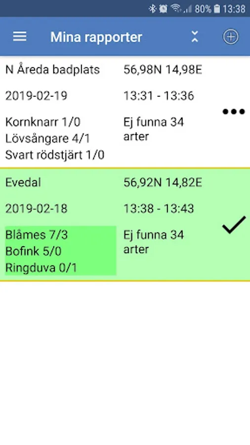 • also makes so-called zero-observation - that is, species on your list of species you have not seen / heard recorded as "Not found" in the Species Gateway, which is just as important to report as you seen / heard.