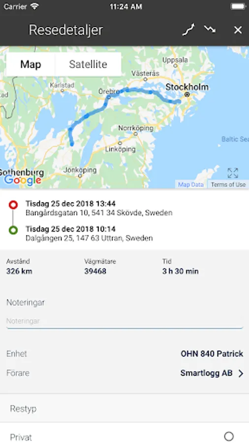 Get control of your vehicle fleet with a triplog that meets the Tax Agency's requirements. Driving record for both company cars and benefit cars. Easily send reports to finance and compile hours for invoicing. Easy driver identification with app and QR code. See your devices in real time and get theft protection with alerts. Custom alerts via email, text messages and push notifications. Object description with photos and the possibility to send a theft report to the police and insurance companies for easy identification. Automatically stores all your trips in the cloud.