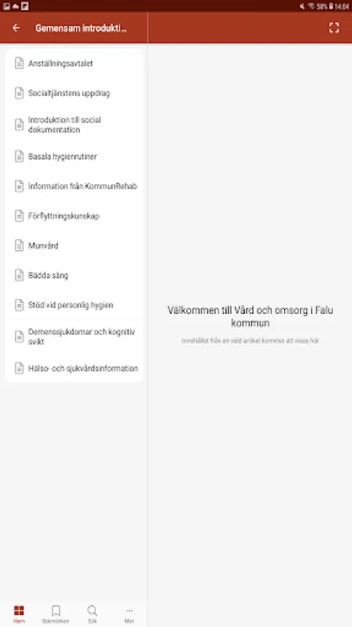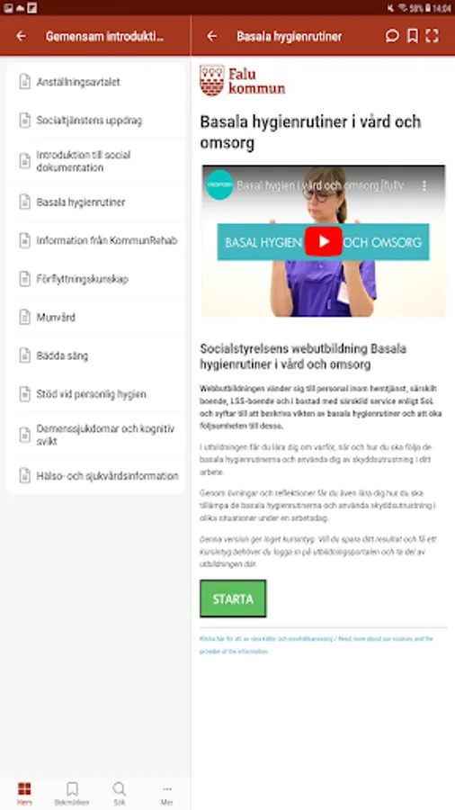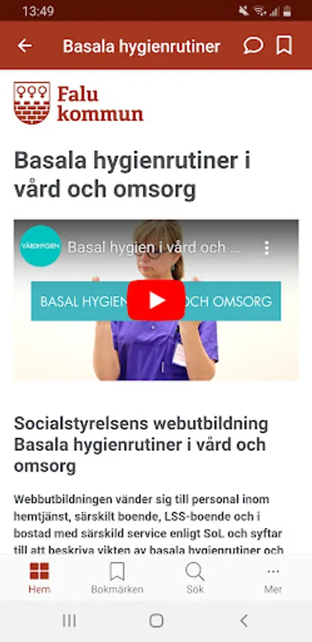 Mobile knowledge support for staff working with care and care within Falu municipality. The purpose of the application is to provide timely access to news, instructions, routines, contact paths and training for staff working in nursing and social services. The application will be constantly updated and evaluated.