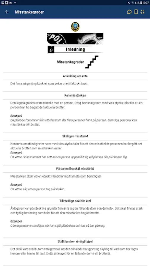 The application is primarily intended for single policeman, students at the police academy and the public to increase the knowledge of police work in democratic rule of law.