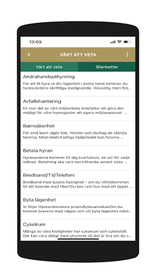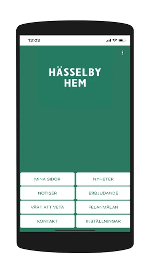 Hässelby Hem's app for tenants. Here you will find information about your accommodation, can report errors and reach "My pages".