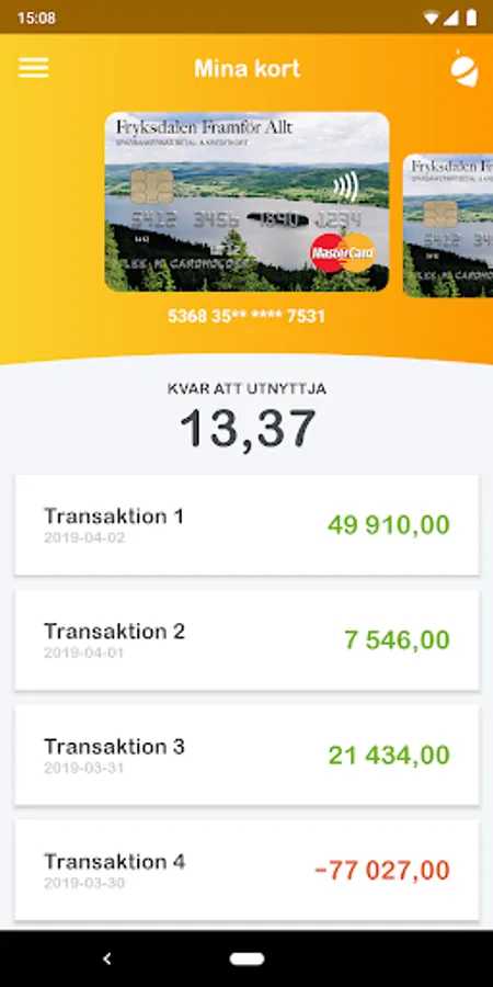 With Sparbanken's card app, you get an easily accessible and quick overview of your card or cards. In a smooth way, you see your balance and your recent purchases, transfer money between cards, turn off the card for Internet or international purchases and much more.