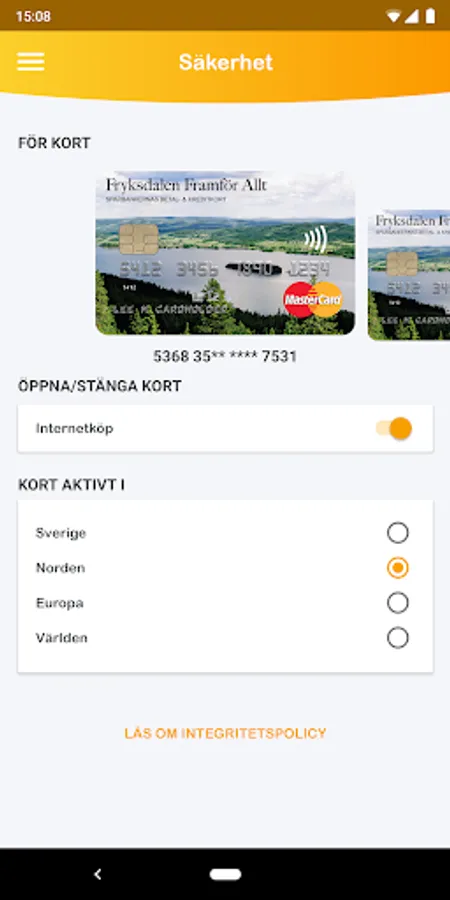 * On / Off - Possibility to turn on / off the card for purchases in different regions outside Sweden
