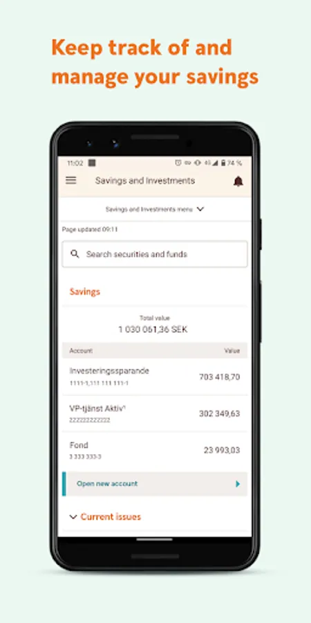 With our app you can manage your everyday banking whenever and whereever you want. You can, among other things, check your balance without logging in, do a quick transfer between accounts and OCR-scan your invoices. The app will help you: