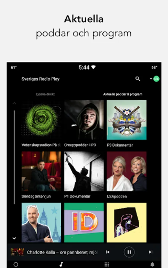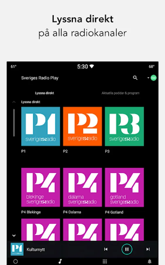 Listen to all of Swedish Radio's content in our official app. All channels are available live and all shows on demand.