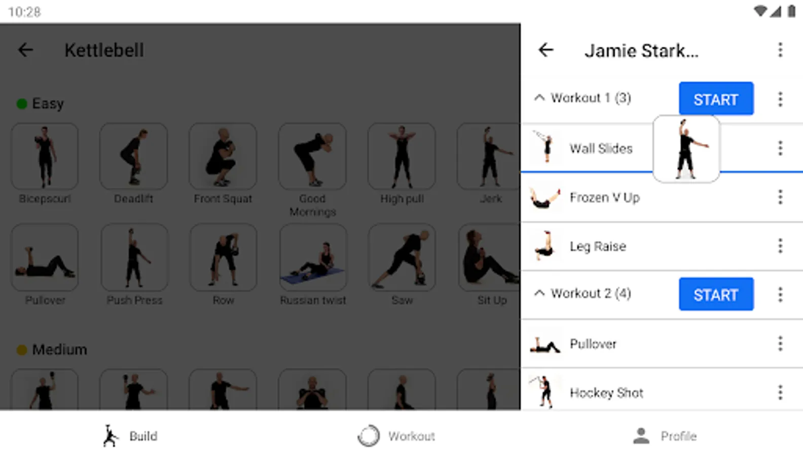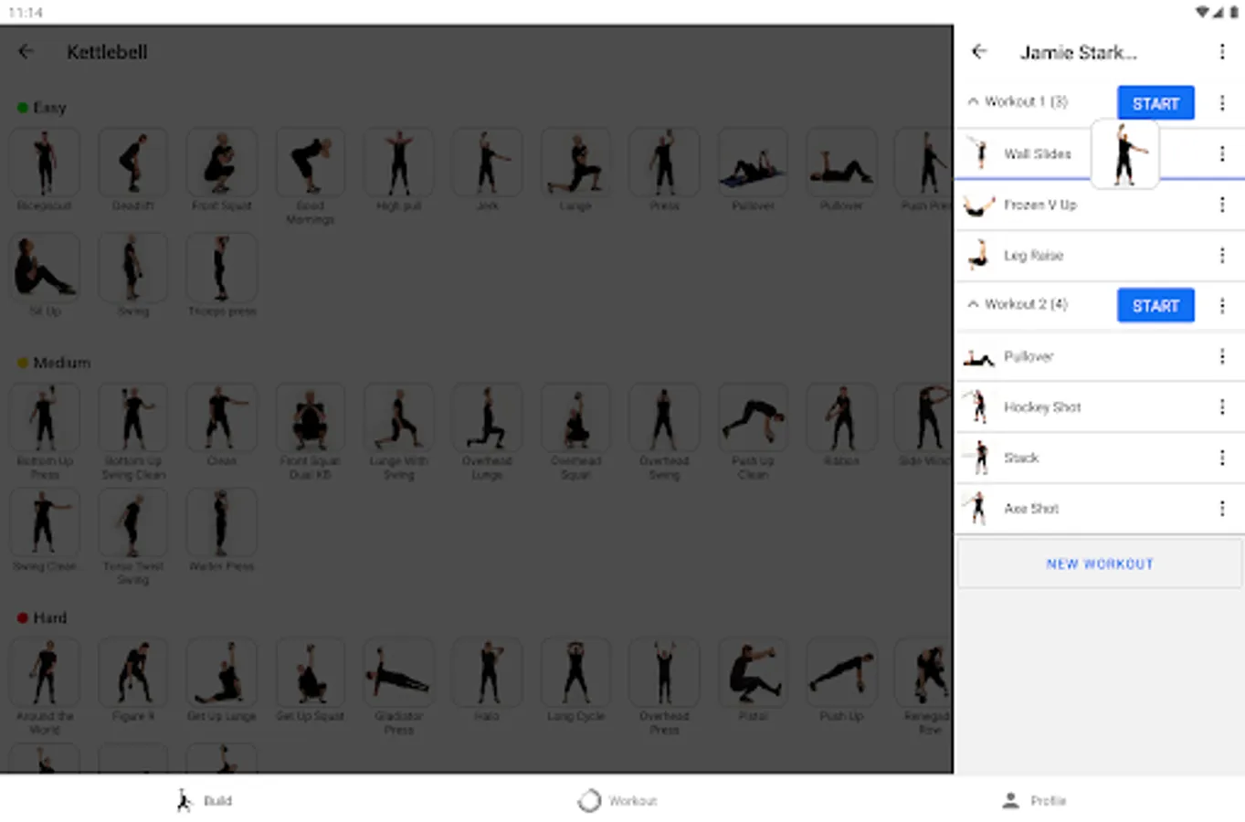 Start a workout, follow the instructional videos and try to keep up with the pace.